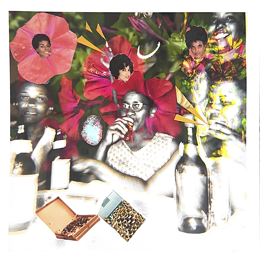 Through this revamping and altering of photographs, the artists in Familiar Rhythm create feelings of familiarity and nostalgia by allowing snippets of Black cultural tradition to induce a feeling of collective memory and re-memory. The vague feeling of nostalgia presents itself within each of these artists’ works, creating a surreal viewing experience that allows the viewer to feel comfortable in feelings of cultural and shared memory.